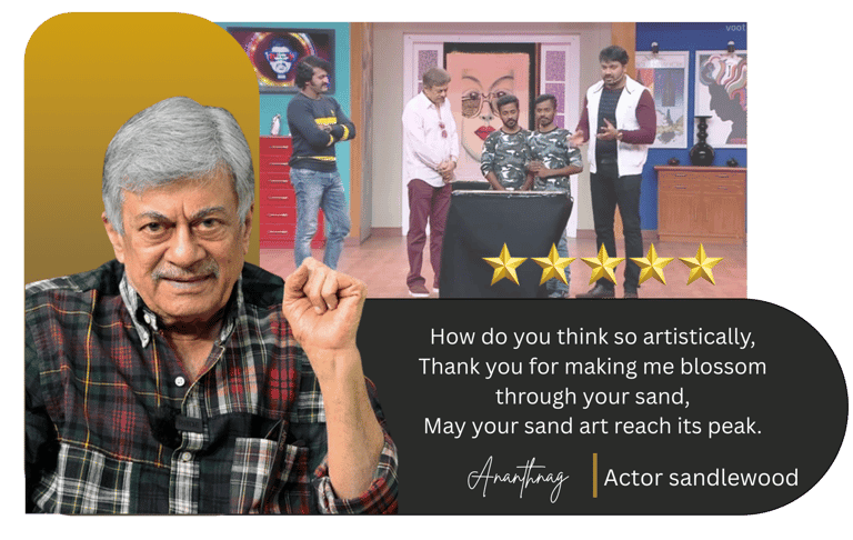 Renuka Swamy is one of the most accomplished sand artists in the country. He has been performing sand art since 2013 and is recognized as the fastest sand artist in India. He is also a master at painting portraits in sand. Renuka Swamy’s sand art tells entire stories as he creates magic out of tiny grains of sand.